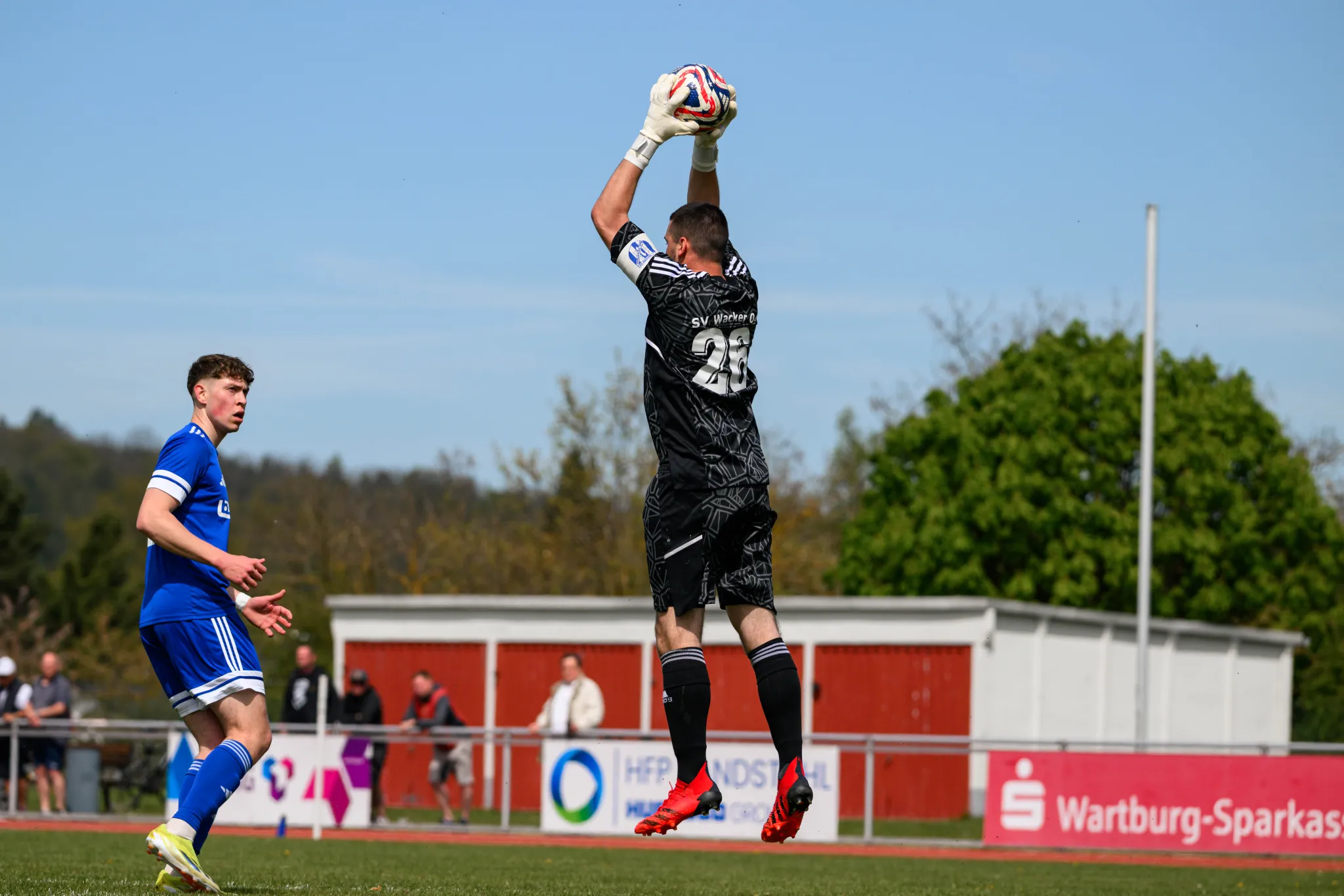 In der Schlussphase zogen sich die Hausherren in Stück zurück und liefen somit Gefahr, doch noch den Ausgleich zu kassieren. Zuvor hatte Noah Ihling noch gegen Mousa geklärt, Belmin Cibo hätte ansonsten bereit gestanden. Marcel Bischoff trat noch zu einem Freistoß links vom Strafraum an, der mit viel Kraft direkt gegen den Kopf von Phil Pulkus ging. Da dürften nach Abpfiff sicherlich ein, zwei Aspirin verabreicht worden sein. Marvin Berg beging in der Nachspielzeit noch ein Foul, das kurz vor der Strafraumgrenze geschah und somit dem FC Steinbach-Hallenberg keine Gelegenheit mehr zum Punktgewinn gab. Die Haseltaler stehen weiterhin auf dem vorletzten Tabellenplatz, vier bis sieben Punkte hinter Erlau, an denen Wacker mit dem Dreier vorbeizog, und nur noch einen Zähler vor Schlusslicht Ifta, das sogar noch ein zusätzliches Nachholspiel in der Hinterhand hat.