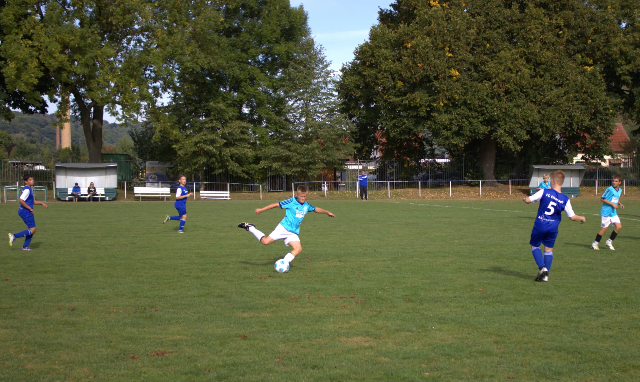 Das Spiel begann ausgeglichen, beide Teams suchten von Beginn an den Weg nach vorn. In der 22. Minute schlugen die Gastgeber erstmals zu: Anton Kluge (Nr. 9) verwandelte nach einem schnellen Angriff zur 1:0-Führung für den FC Eisenach II.