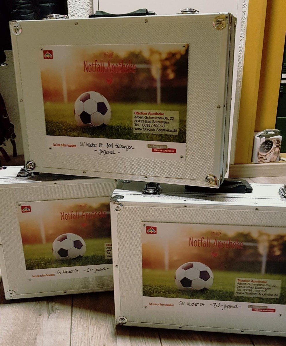 Wir bedanken uns recht herzlich bei der Stadion Apotheke Bad Salzungen für die neuen Sanitätskoffer für unsere Jugendmannschaften.